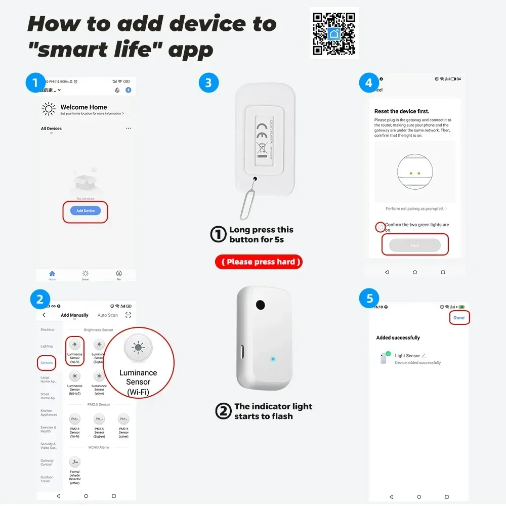 1* Capteur de lumière intelligent (WiFi et Zigbee disponibles)
